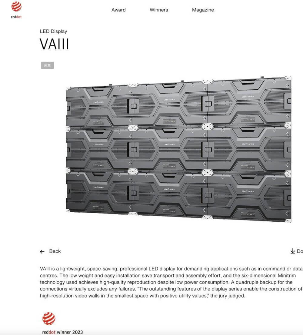 近日,2023年德國紅點設(shè)計大獎名單公布。聯(lián)建光電VAIII系列微間距顯示屏、Pilot Pro系列租賃顯示屏、BIM Plus-X系列室內(nèi)商業(yè)顯示屏三款產(chǎn)品同時斬獲素有設(shè)計界“奧斯卡”之稱的紅點設(shè)計獎,這三款產(chǎn)品凝聚著全球前沿技術(shù)和創(chuàng)新設(shè)計,實至名歸。據(jù)統(tǒng)計,聯(lián)建光電是2023紅點獎中獲獎最多的LED顯示品牌。