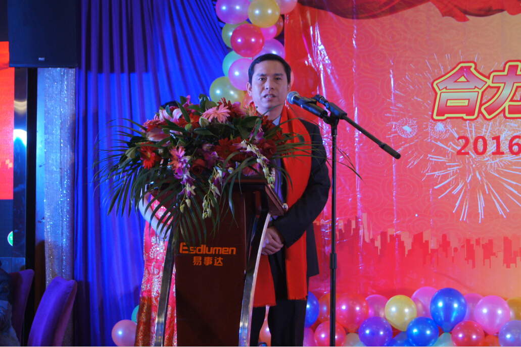 今天我們歡聚一堂,共同慶祝2015年易事達(dá)所取得的豐收成果,同時(shí)也信心百倍的迎接2016年新的挑戰(zhàn)。回顧2015,公司業(yè)績(jī)?nèi)〉昧藲v史性的突破;