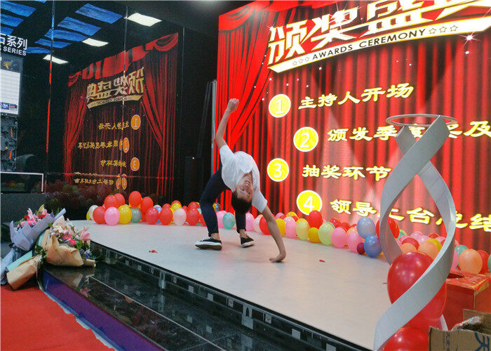 隨著主持人的開場熱身小游戲,現(xiàn)場氣氛嗨了起來。音樂開始,依次傳氣球活動。主持人喊停,手持氣球的同事按氣球內(nèi)紙條要求完成相應任務?!靶疫\兒”表演節(jié)目 。