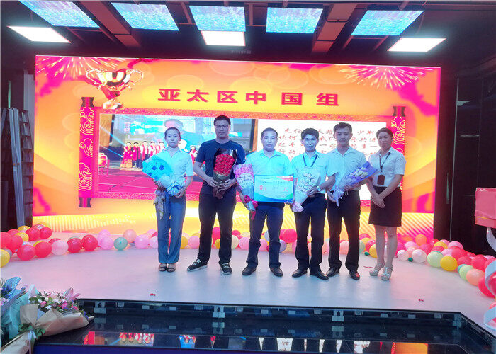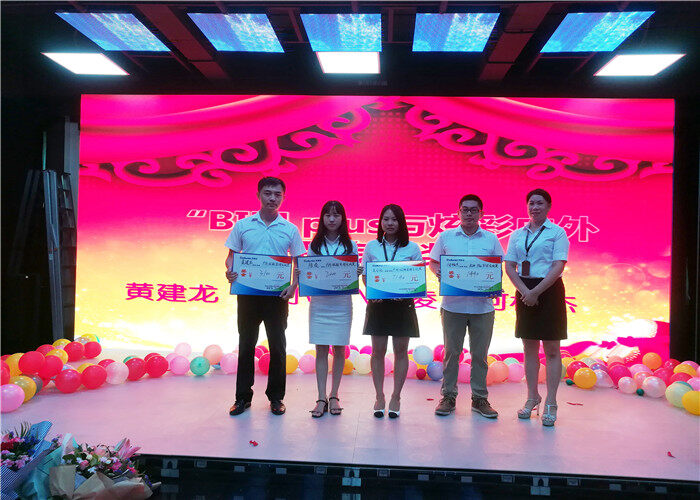 (公司領(lǐng)導給第二季度冠軍得主頒獎并合影)
