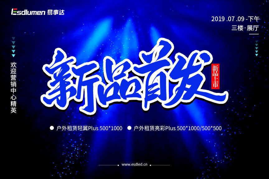2019年7月9日下午,在易事達(dá)電子三樓展廳舉行發(fā)布會(huì),正式發(fā)布戶外租賃新品輕翼Plus 500*1000和亮彩Plus P3.9/P4.8。