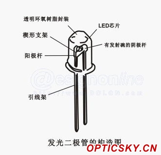 LED即發(fā)光二極管,是一種半導(dǎo)體發(fā)光器件。它是利用固體半導(dǎo)體芯片作為發(fā)光材料,基本結(jié)構(gòu)是一塊電致發(fā)光的半導(dǎo)體材料,置于一個(gè)有引線的架子上,四周用環(huán)氧樹脂密封,起到保護(hù)內(nèi)部芯線的作用。