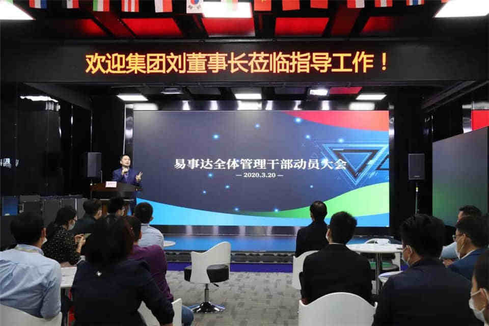 3月20日上午10點(diǎn)半,易事達(dá)全體管理干部在三樓展廳舉行動員大會,集團(tuán)董事長劉虎軍先生、易事達(dá)董事長兼總經(jīng)理吳錚、首席財(cái)務(wù)官王廣彥以及公司管理干部參加會議。
