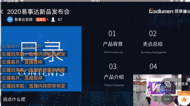由于疫情原因,本次新品發(fā)布會是易事達首次采用直播+線上互動的形式開展,雖然經(jīng)驗欠佳,但整體也算圓滿;在后續(xù)的活動當中,我們將通過開展話題討論等形式,邀請研發(fā)產(chǎn)品專業(yè)人士,對外線上直播,點對點對不同需求客戶傳播公司品牌和產(chǎn)品。