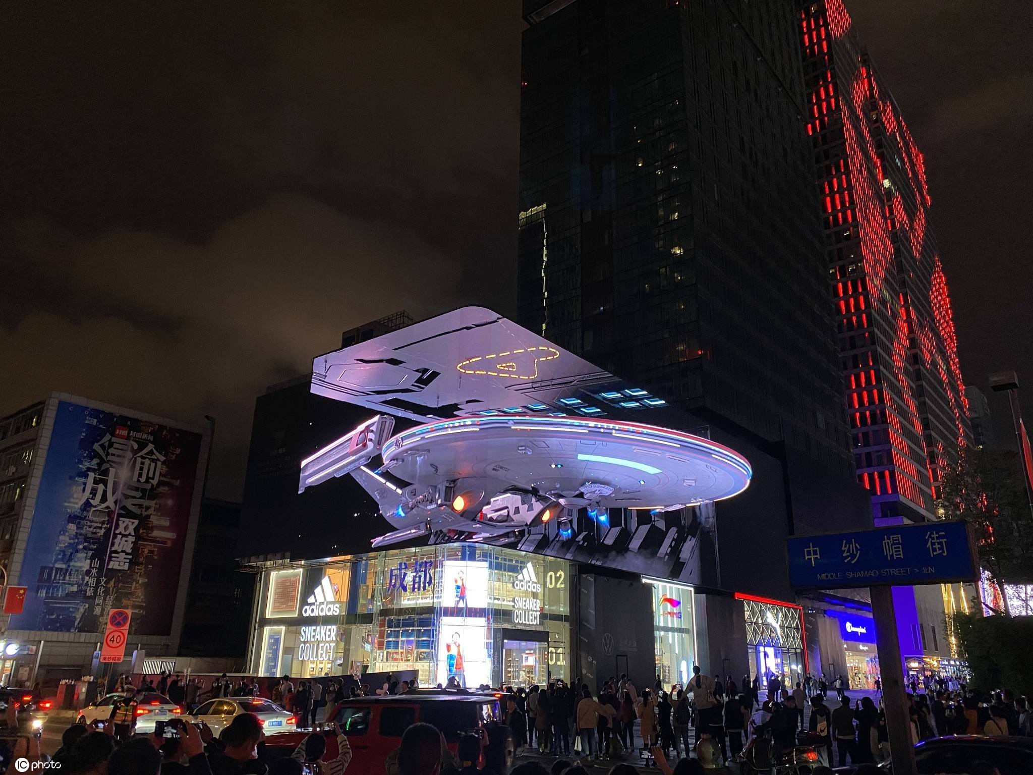 聯(lián)建光電承制的這塊網(wǎng)紅LED巨幕,位于成都春熙路太古里核心商圈,項目分辨率達8K,總面積近1000㎡,裸眼3D巨幕與一旁的450㎡超高清屏“雙屏聯(lián)動”作用下,為春熙路商圈注入了新的活力。此前,為了將大廈打造成春熙路商圈第一標桿,并讓飛船“飛出”的效果得以淋漓盡致的體現(xiàn),項目特別針對白天與黑夜不同場景進行多元化細節(jié)呈現(xiàn),搭配平滑恰到好處的90°無縫轉(zhuǎn)角模組技術(shù)、戶外高亮廣角顯示面板技術(shù)、高對比吸光面罩等先進技術(shù),瞬間打破藝術(shù)的邊境,讓整體墻面頓時注入裸眼3D數(shù)字技術(shù)新生命,以全新的面貌向路人“述說”未來太空的奇幻故事。超高像素、超大曲面巨幕LED形成的震撼視覺沖擊力,使得創(chuàng)意大屏一經(jīng)點亮便從春熙路數(shù)以萬計的戶外廣告媒體中脫穎而出,單日輻射人流量高達40萬,全年精準高價值輻射人群超1億,對比傳統(tǒng)戶外廣告ROI至少提升3倍以上,其“吸金”能力不可估量,成為載入世界戶外商業(yè)顯示史冊的典型案例。