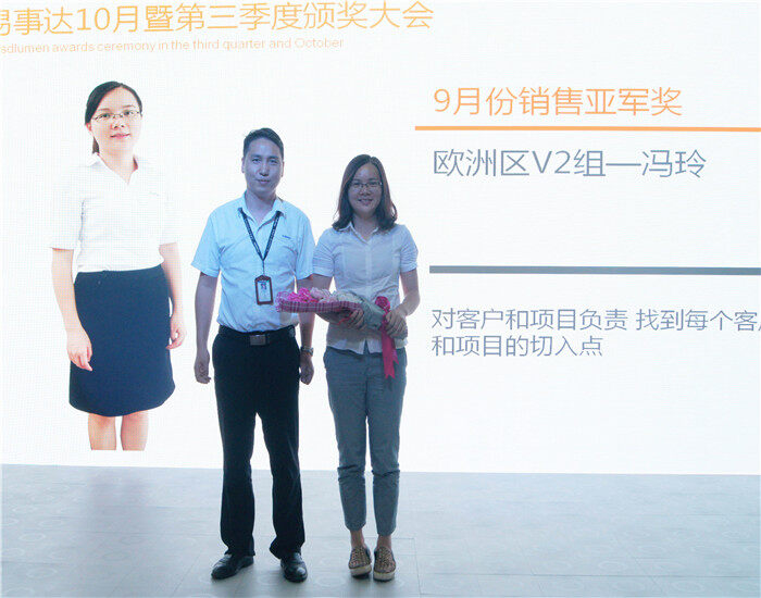 下面頒發(fā)的是2016年9月份銷售亞軍!她就是歐洲區(qū)V2組-馮玲。