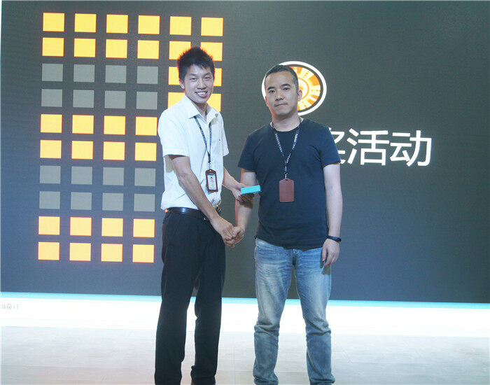 頒獎(jiǎng)大會(huì)現(xiàn)場(chǎng)開啟激動(dòng)人心的現(xiàn)場(chǎng)抽獎(jiǎng)活動(dòng),大家的熱情很高。季軍羅祥、亞軍馮玲兩位上臺(tái)抽取了二等獎(jiǎng)2名 獎(jiǎng)品是:機(jī)器人藍(lán)牙音響。