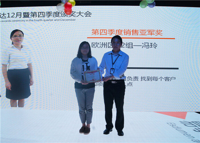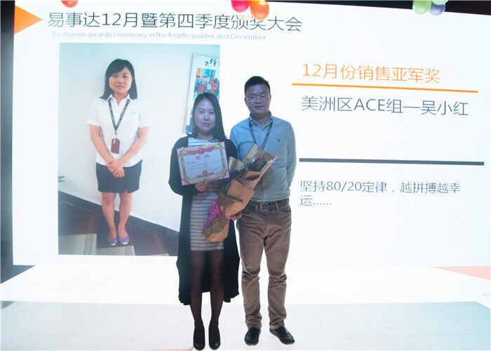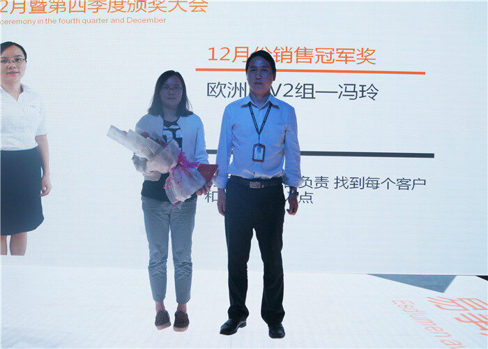 首先揭曉的是新秀開單獎,我們都知道,作為一位新人,在新的環(huán)境,新的崗位里,要想成功獲得訂單,得付出更多的努力和堅持,而且這樣的付出了還不一定能得到客戶的認(rèn)可!但是在12月份,我們有兩位新人,他們做到了,他們的堅持付出,終于得到了回報!他們就是美洲區(qū)ACE組——張小勇、歐洲區(qū)F1組——黃燕珍。所以說,夢想還是要有滴,萬一實現(xiàn)了呢?!堅持前進(jìn),終有所成。