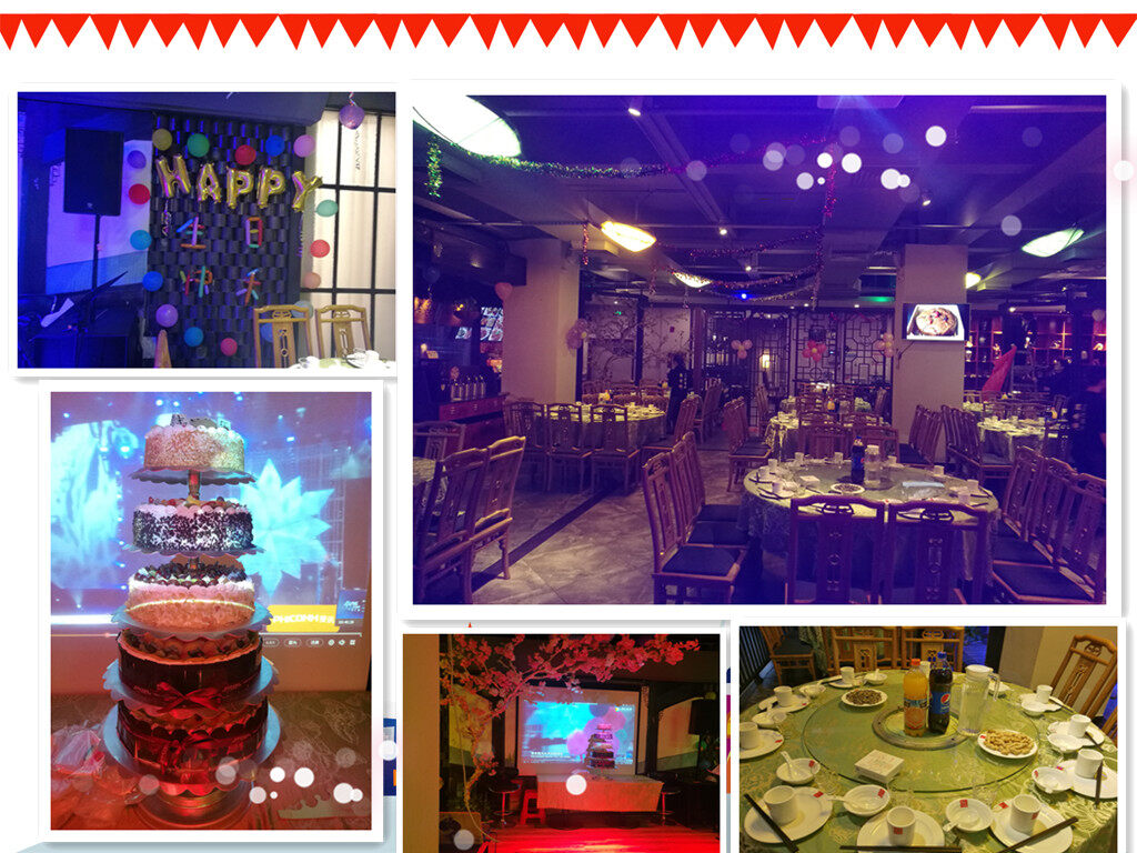 生日會(huì)分三個(gè)流程進(jìn)行,由壽星領(lǐng)導(dǎo)為10-12月壽星送祝福,一起分享生日蛋糕,享受晚餐美食三部分組成。在壽星領(lǐng)導(dǎo)送祝福環(huán)節(jié),品質(zhì)部于經(jīng)理和研發(fā)二部胡總監(jiān)作為領(lǐng)導(dǎo)代表對(duì)我們?cè)趫?chǎng)的壽星送上了真摯的祝福?!白D闵湛鞓?lè),祝你生日快樂(lè)”伴隨生日歌的唱響,許愿與分享蛋糕時(shí)刻就到來(lái)了,五層的生日蛋糕,寓意壽星們步步高升,甜甜的蛋糕,甜甜的心情。享用了生日蛋糕后,就進(jìn)入了晚餐正式時(shí)刻,一盤盤美食上桌,大家舉杯同祝。