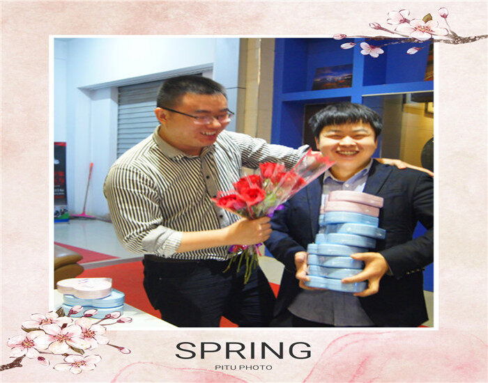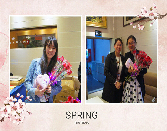 (人資潘總給女同胞們發(fā)放節(jié)日禮品和MM們愉快的合影)