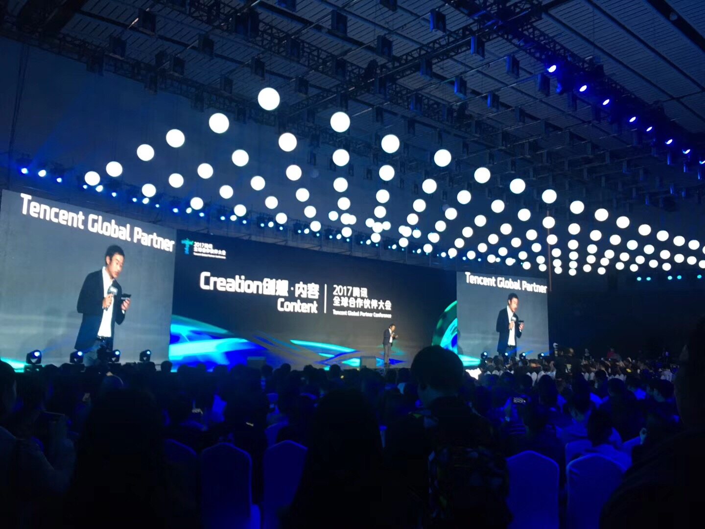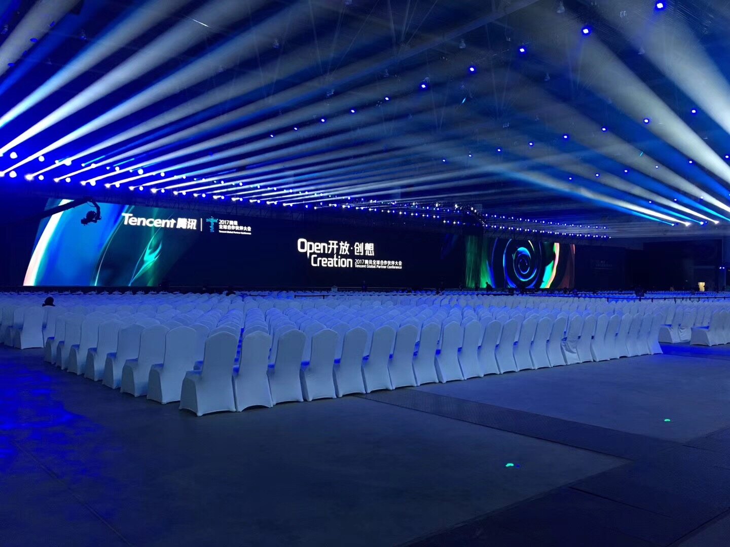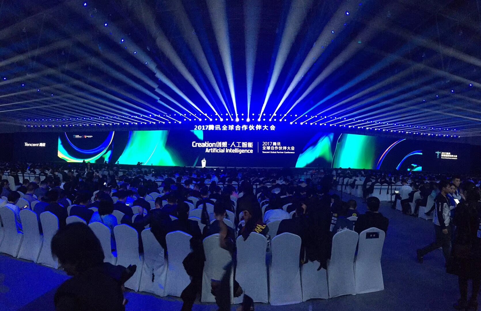 本次大會的精彩不止于以上種種,LED顯示屏同樣成為大會的亮點。整個會場被LED屏包圍,流光溢彩,熠熠星輝,科技范十足,再配上“2017騰訊全球合作伙伴大會”的主題“開放· 創(chuàng)想”,打造出了一場無與倫比的LED屏科技視覺盛宴。