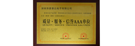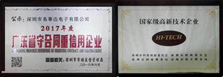 易事達(dá)先后獲得“國家級(jí)高新技術(shù)企業(yè)”、“中國著名品牌”、“中國綠色環(huán)保產(chǎn)品”、“中國LED行業(yè)十強(qiáng)品牌”、“中國LED創(chuàng)新產(chǎn)品和技術(shù)獎(jiǎng)”、“質(zhì)量、服務(wù)、信譽(yù)AAA單位”、“廣東省守合同重信用企業(yè)”、“深圳市龍華新區(qū)納稅50強(qiáng)”等榮譽(yù)稱號(hào),產(chǎn)品通過CE、GMC、IEC、FCC、ETL 、RoHS等國際權(quán)威認(rèn)證。