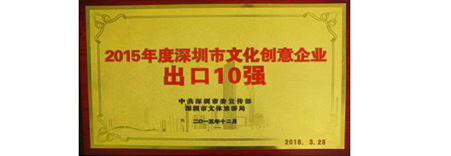 榮獲2015年度深圳市文化創(chuàng)意企業(yè)出口10強(qiáng)