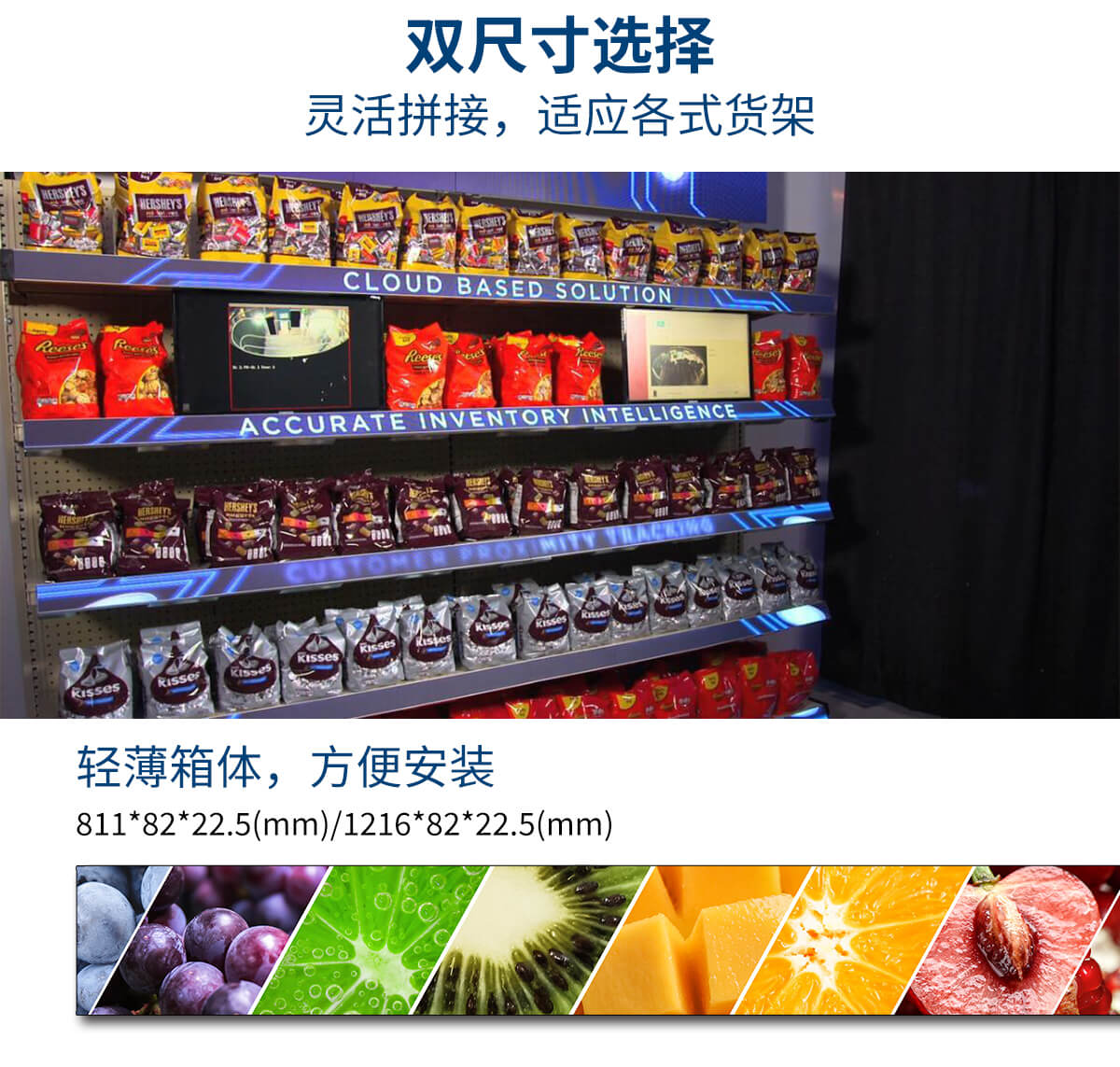 1. 通用安裝結(jié)構(gòu),適合超市/賣場/倉庫貨架屏安裝;