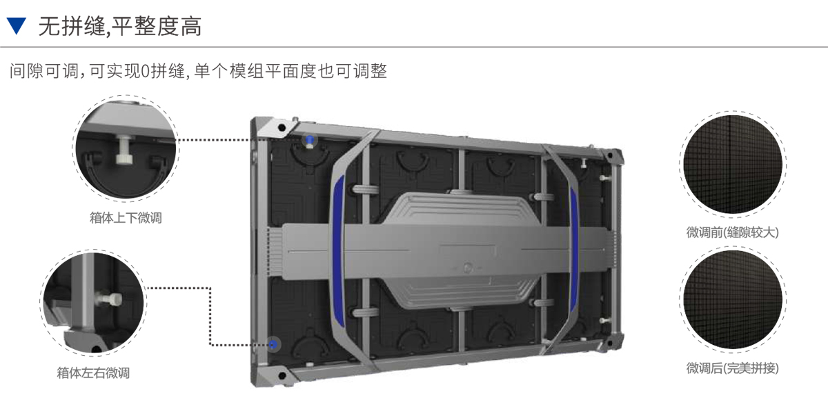 間隙可調(diào),可實(shí)現(xiàn)0拼縫,單個模組平面度也可調(diào)整