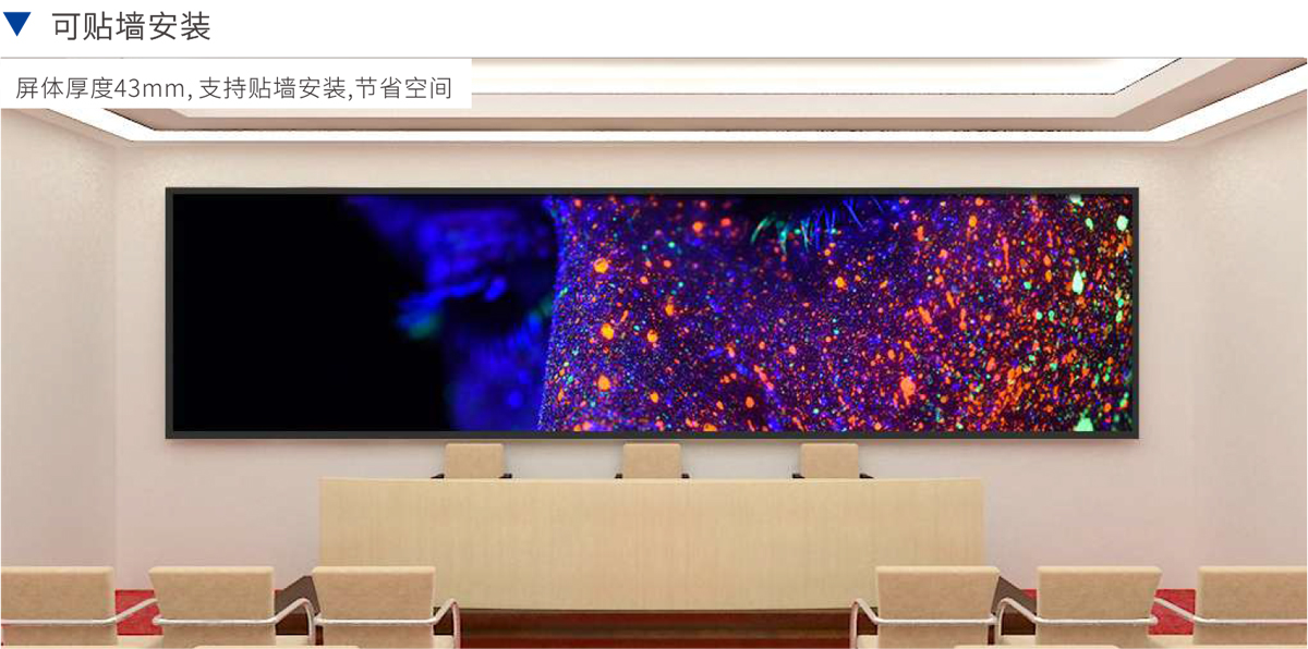 屏體厚度43mm,支持貼墻安裝,節(jié)省空間