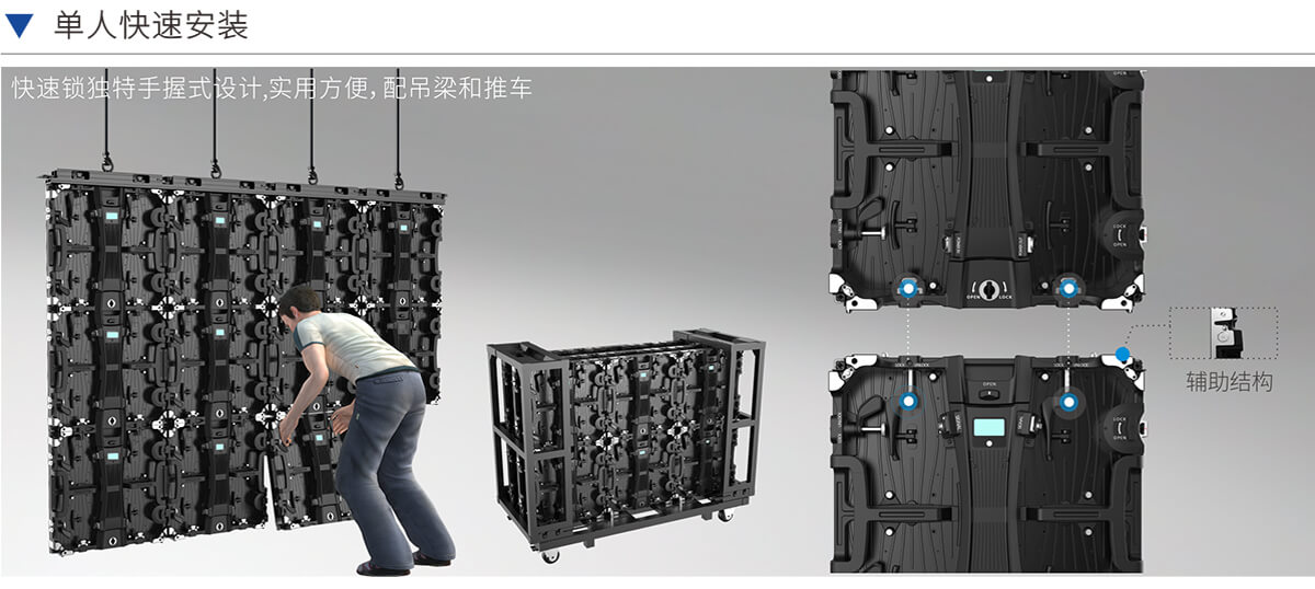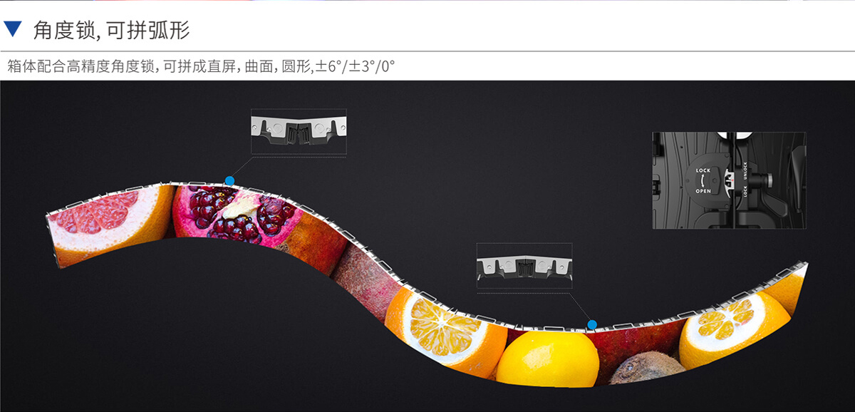 箱體配合高精度角度鎖,可拼成直屏,曲面,圓形,±6°/±3°/0°