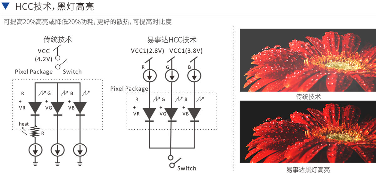 可提高20%高亮或降低20%功耗,更好的散熱,可提高對(duì)比度