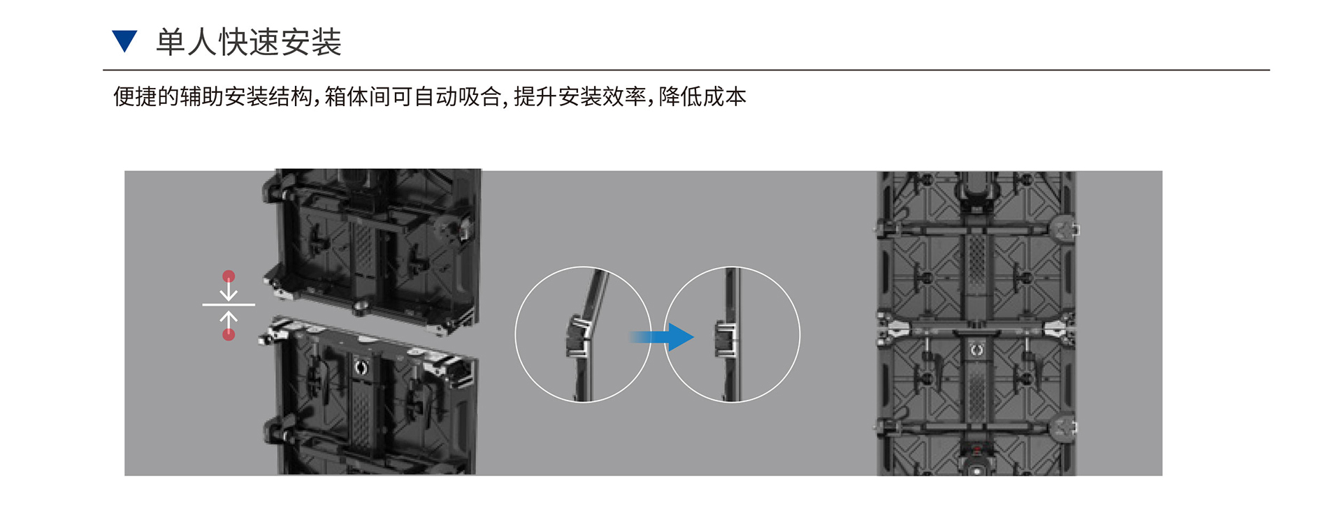 便捷的輔助安裝結(jié)構(gòu),箱體間可自動吸合,提升安裝效率,降低成本