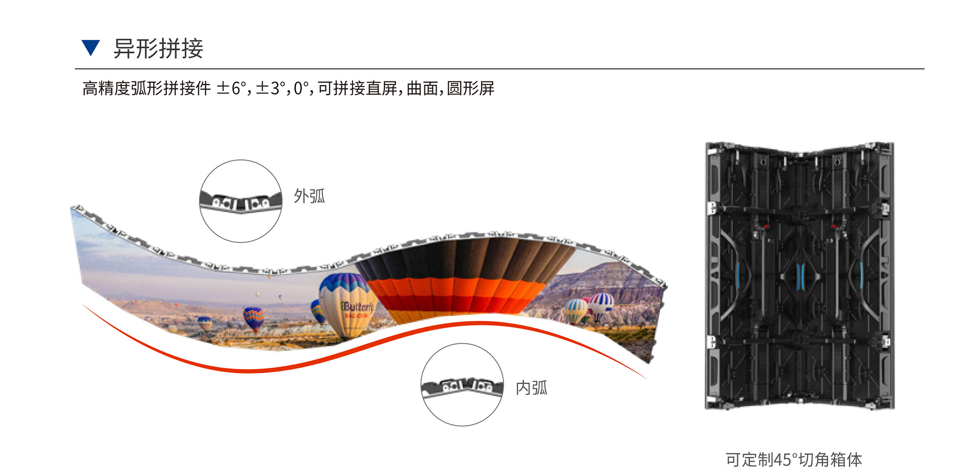 高精度弧形拼接件±6°,±3°,0°,可拼接直屏,曲面,或圓形屏
