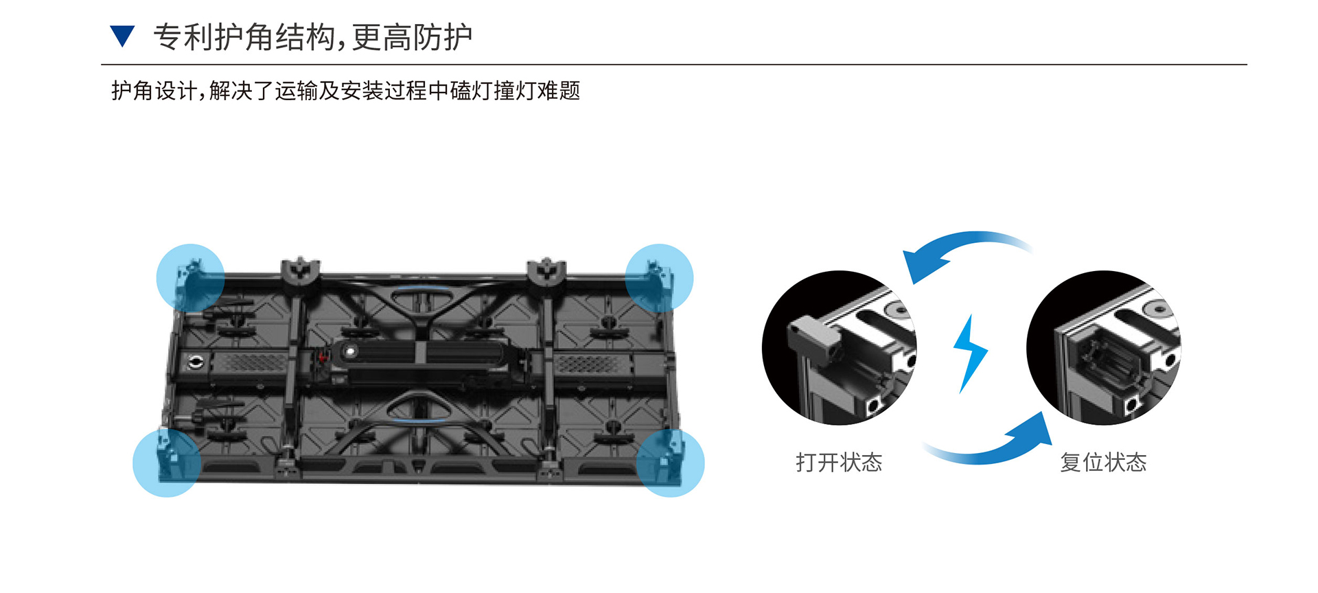 護(hù)角設(shè)計(jì),解決了運(yùn)輸及安裝過程中磕燈撞燈難題