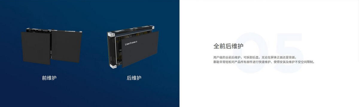 用戶級(jí)的全前后維護(hù),可拆卸后蓋,無論在屏體正面還是背面,都能非常輕松對(duì)產(chǎn)品所有部件進(jìn)行快速維護(hù)、使得安裝及維護(hù)不受空間限制