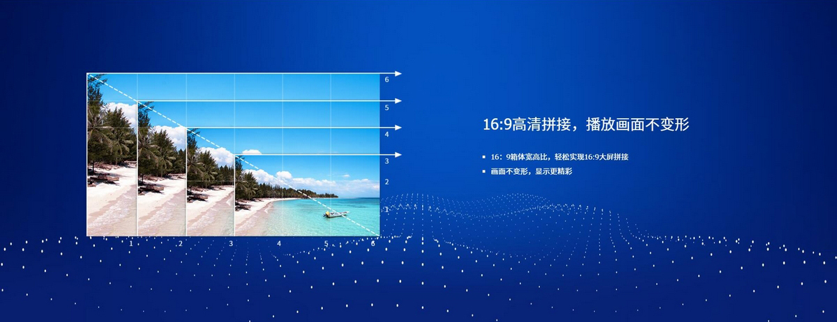 16:9箱體寬高比,輕松實現(xiàn)16:9大屏拼接 畫面不變形,顯示更精彩