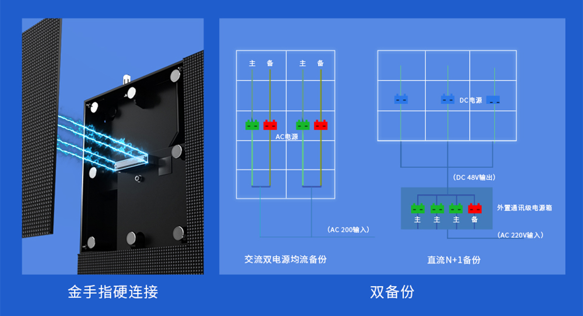 模塊金手指硬連接,支持電源及接收卡雙備份,連接可靠不黑屏