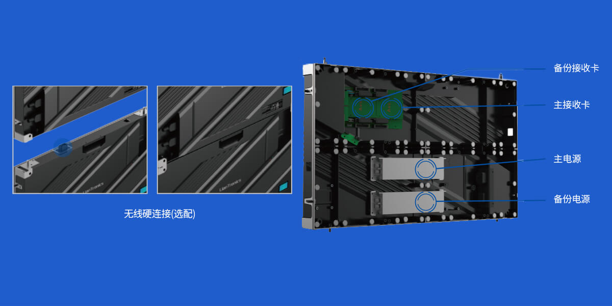 可選箱體級(jí)無線硬連接,運(yùn)行更穩(wěn),安裝更快,美觀簡(jiǎn)潔