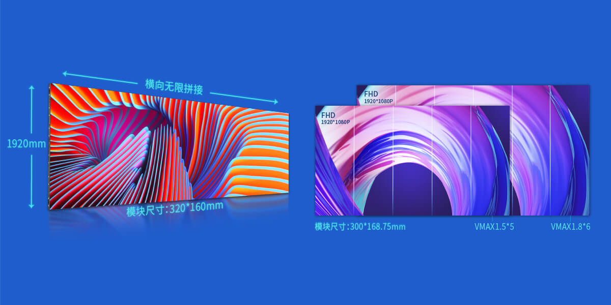 縱向1080像素高清顯示標(biāo)準(zhǔn),橫向根據(jù)安裝應(yīng)用場景任意拓展,可滿足16:9、21:9、32:9等多種高清比例顯示需求