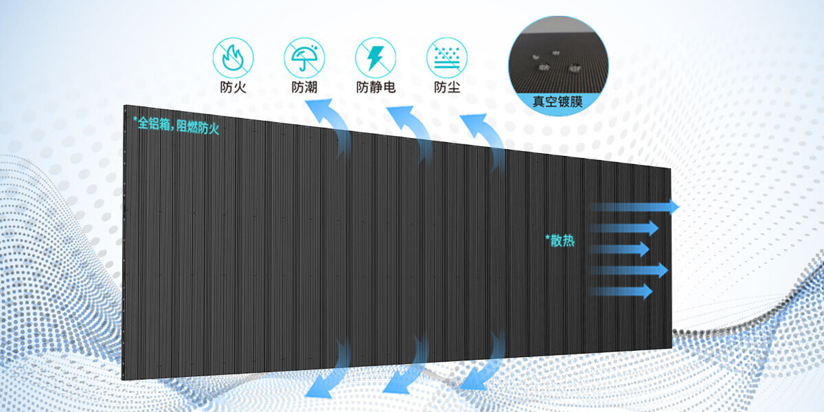 鋁箱條紋紋理設(shè)計(jì),高效散熱;背面無孔化全封閉設(shè)計(jì),IP60高防護(hù),箱內(nèi)不積塵