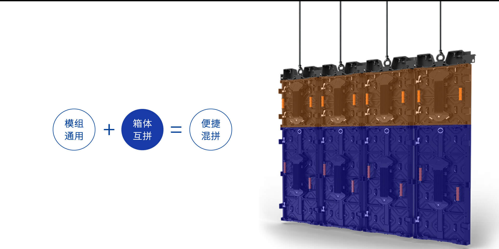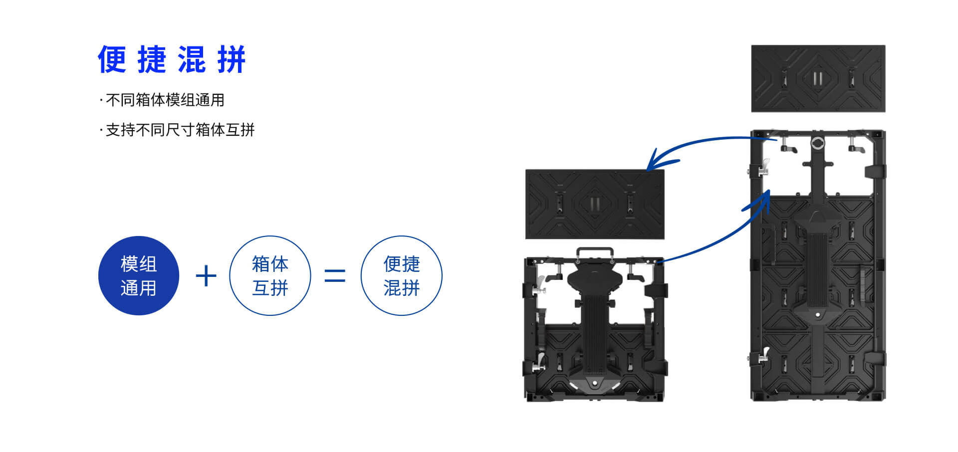 2. 便攜混拼—不同箱體間模組通用,箱體支持互拼;